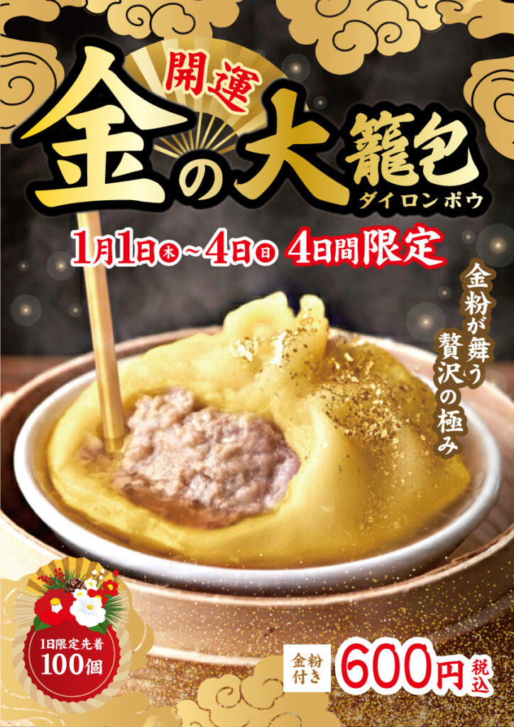1F 開華楼 人気No.1の大籠包が、お正月だけの特別仕様「金の大籠包」として登場します。